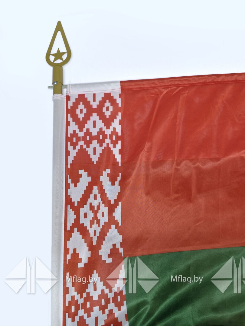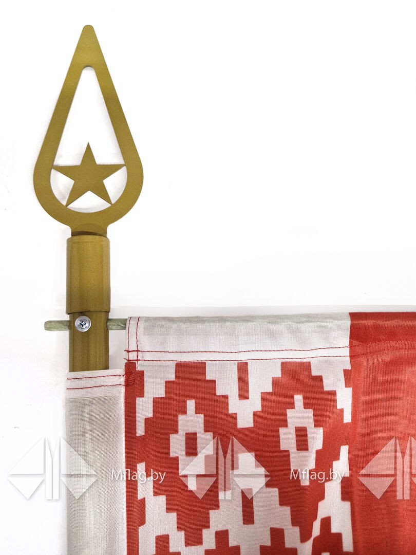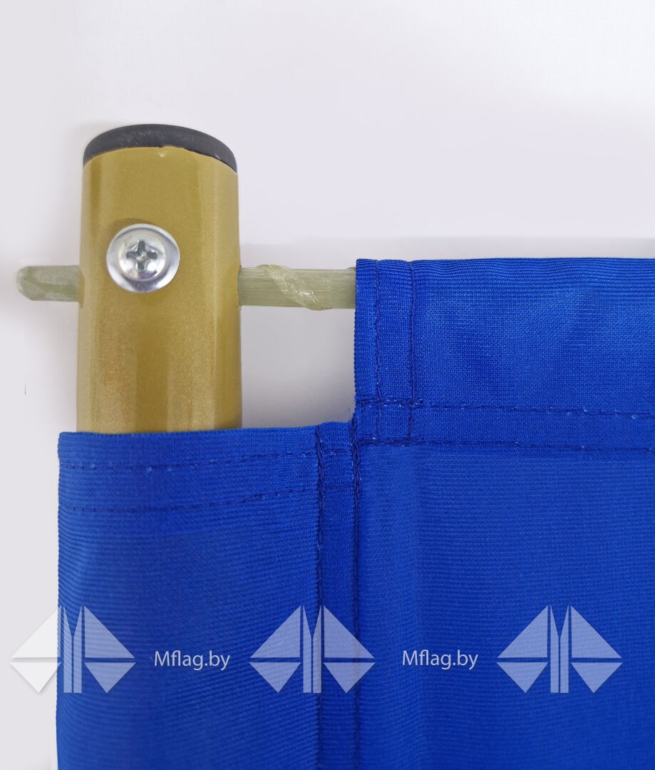 Состоит из двух частей: металлической трубы и вкрученного в верхнее основание прочного пластикового прута . Флаг шьётся специально под конструкцию с двумя карманами, которые одеваются на трубу и прут.
