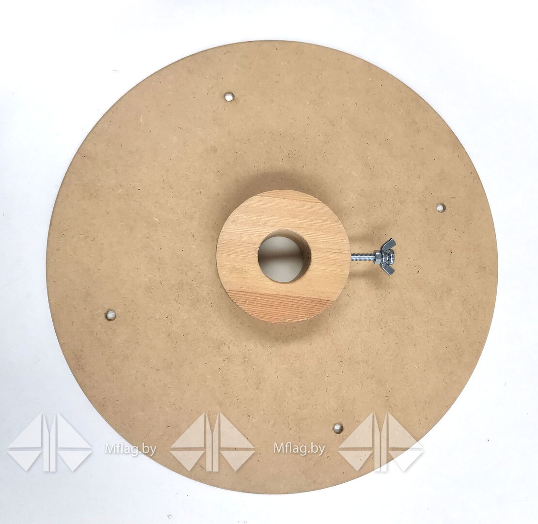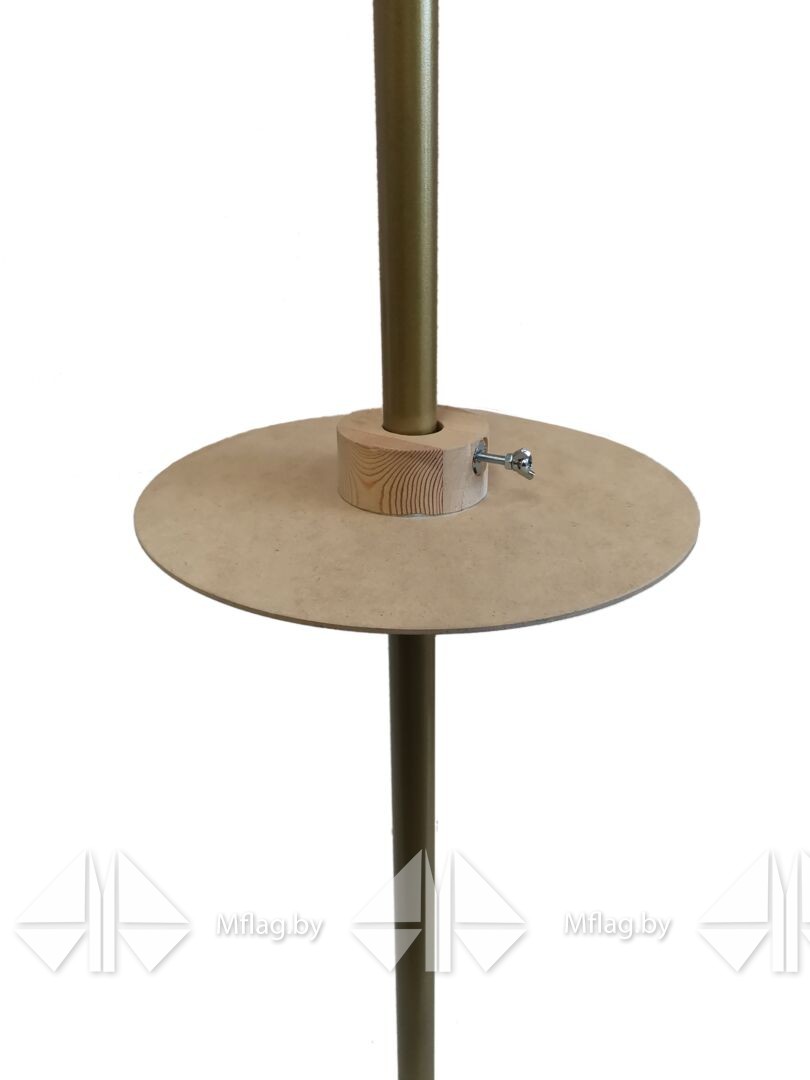 Круг- юбка, создаёт объём флага, который одевается на флагшток и фиксируется держателем-зажимом. Используется для флагов , которые находятся в помещении в тумбах или напольных подставках.